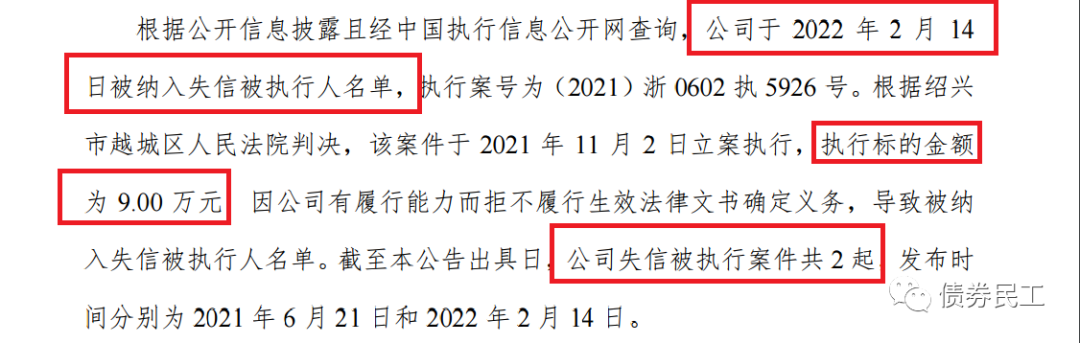 根據評級公司于2022年2月24日披露的關注公告,某城投公司因為執行標的金額為9萬元的案件有履行能力而拒不履行相關義務,于2022年2月14日被納入失信被執行人名單。你沒看錯,執行標的金額真的是只有9萬!!!