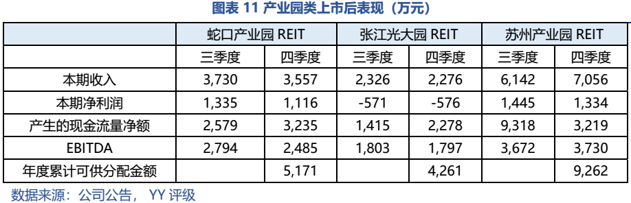 首批9個公募REITs發行上市已7個月,資產類型為產業園區、倉儲物流、生態環保、高速公路。(1)從發行情況看,流動盤占比相對較少,占總份額的40%;產品受到投資者積極的認購,網下平均配售率為14.51%,公眾投資配售率平均為6.27%。(2)二級市場走勢“先抑后揚”,收益率與股票、債券相關度小;日均換手率在1.5%左右,遠高于美國REIT市場的0.7%水平,短線交易明顯。(3)從后續經營情況看,除倉儲物流依舊表現優秀外,其他類型資產第四季度的收入水平都要劣于第三季度。總體來看,投資者持有的收益還是主要來自二級市場上的增值,“股”性突出。