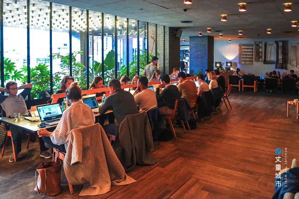 ▼ 倫敦東部科技城的咖啡廳內,聚集的科創工作者們