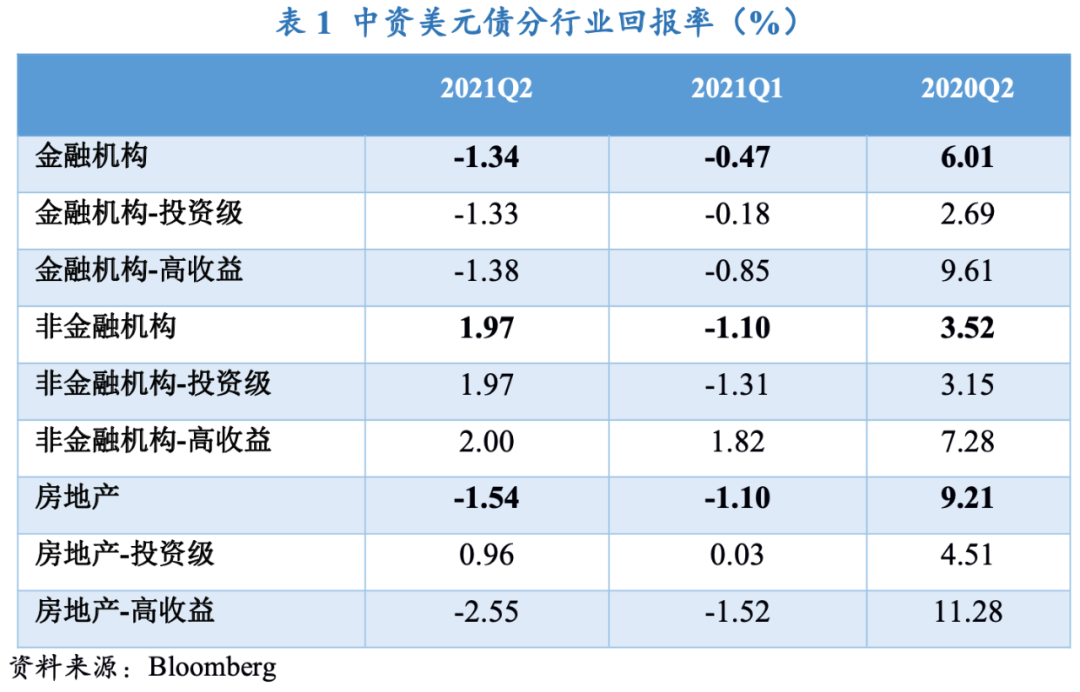 信用風險事件繼續發酵,拖累中資美元債二級市場回報率繼續為負,受地產違約溢出效應影響高收益債券回報率繼續下跌,非金融機構表現穩定對投資級收益率起到提振作用