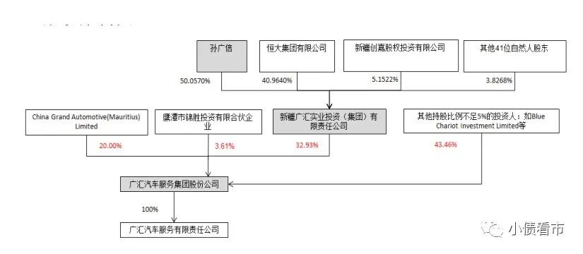 從股權(quán)結(jié)構(gòu)看,廣匯汽車的控股股東為新疆廣匯實業(yè)投資(集團)有限責(zé)任公司,持股比例為32.93%,公司實際控制人為孫廣信。