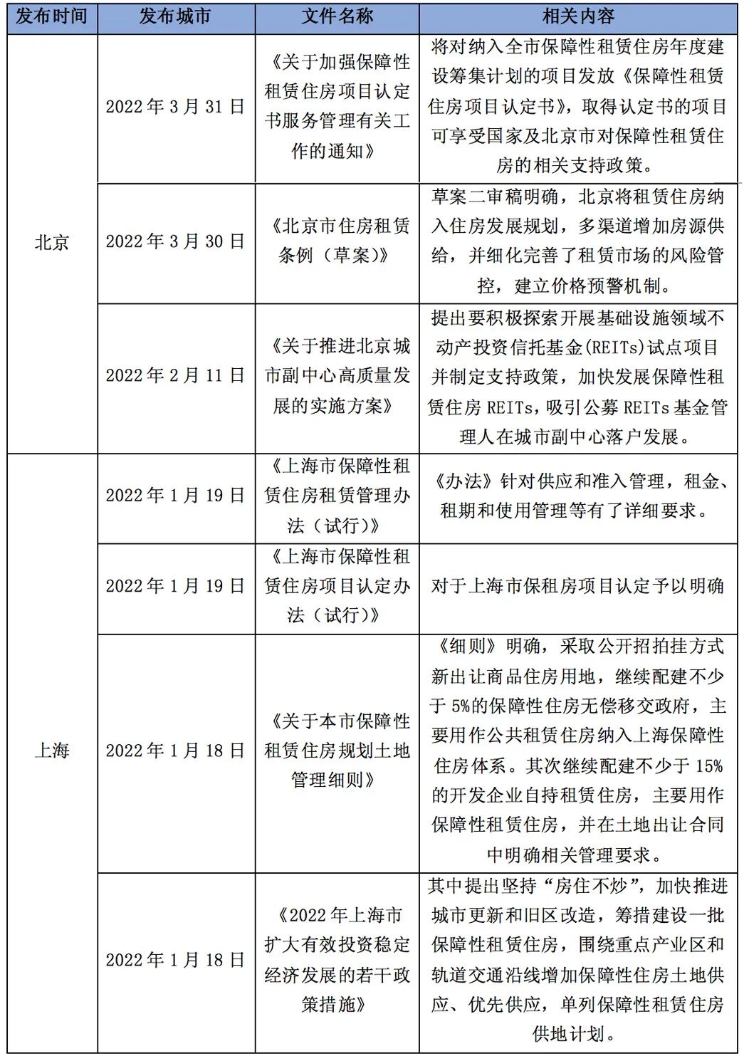 表2:2022年Q1北京、上海保障性租賃住房相關(guān)政策
