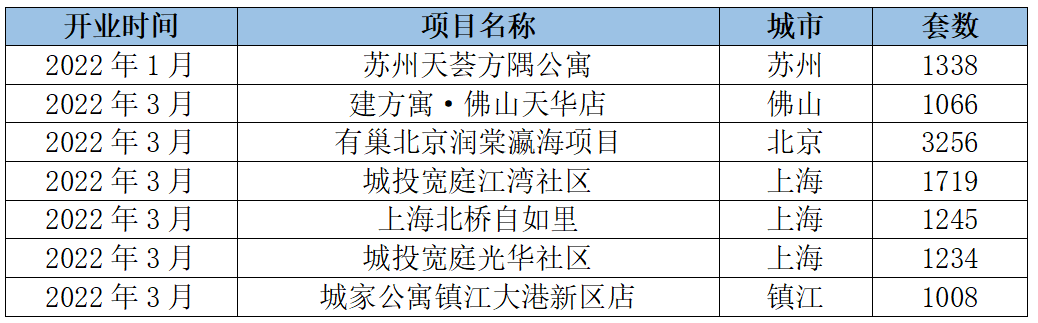 表3:2022年Q1部分新開業(yè)大型租賃社區(qū)項目匯總