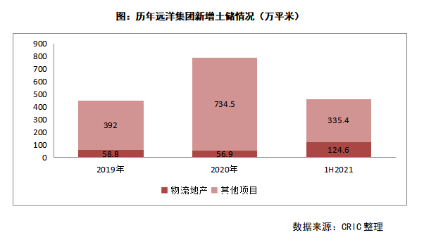 此外,遠洋集團也將物流地產(chǎn)、數(shù)據(jù)地產(chǎn)作為協(xié)同業(yè)務,確立了中長期發(fā)展戰(zhàn)略。從遠洋集團2021年上半年的新增土儲數(shù)量來看,物流地產(chǎn)達17幅,已超過了住宅開發(fā)項目的16幅;新增物流地產(chǎn)總樓面面積124.6萬平米,占上半年新增土儲的27%,相比2020年全年占比提升了20個百分點。