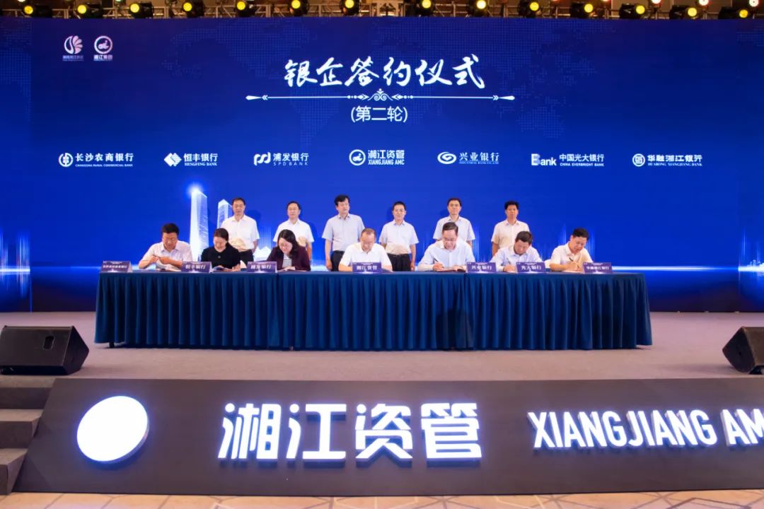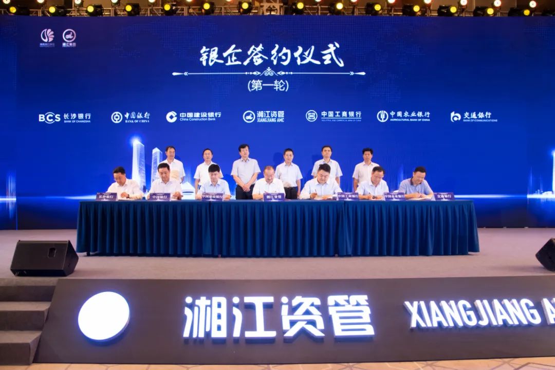 揭牌儀式上,湘江資管分別和中國工商銀行湖南省分行、中國農業銀行湖南省分行、中國銀行湖南省分行、中國建設銀行湖南省分行、交通銀行湖南省分行、長沙銀行、光大銀行、浦發銀行、興業銀行、恒豐銀行、華融湘江銀行、長沙農村商業銀行等20家銀行簽訂了戰略合作協議,授信總額超200億元。