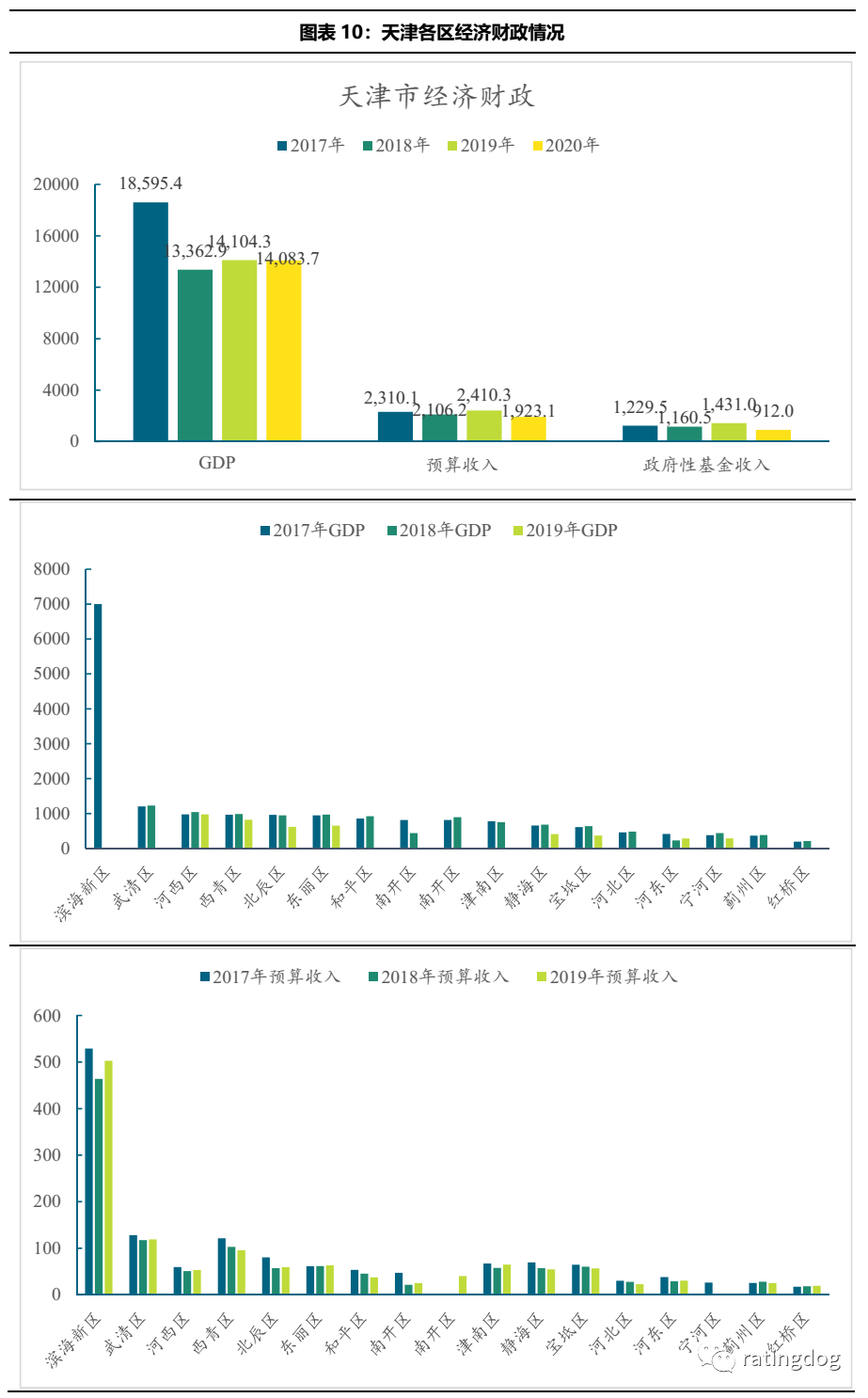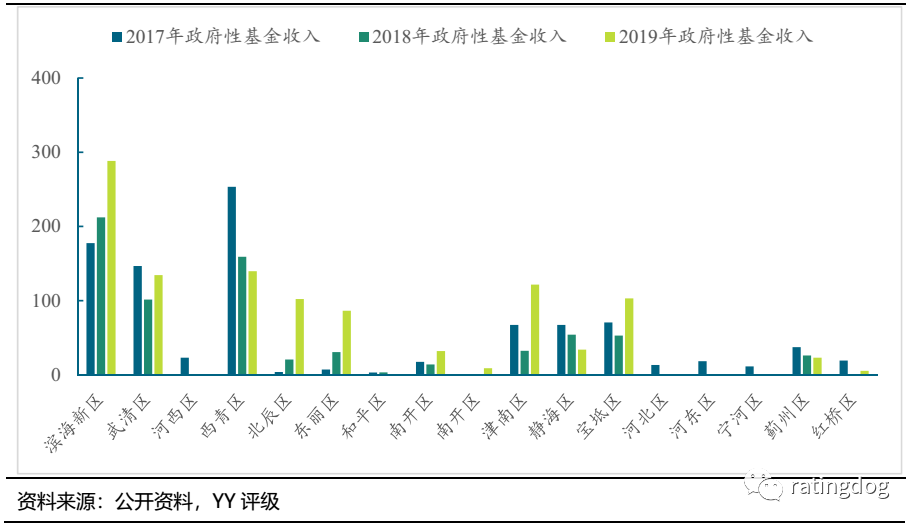 武清區和西青區GDP規模不大,但預算收入和政府性基金收入規模較大,特別是西青區,雖近年基金收入有所下降,但規模仍排名靠前。