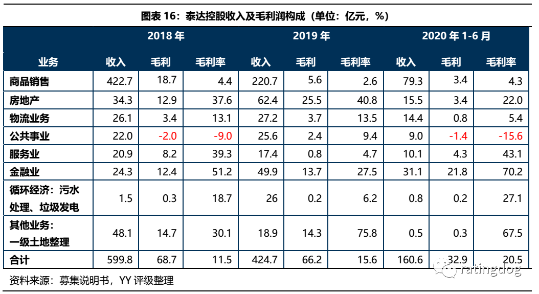從職能來看,公司各板塊業務可分為兩大類,一是城投類業務,包含公用事業、循環經濟和其他業務;二是國有資本投資運營,一方面是產業經營,包括商品銷售、房地產、物流和服務業,另一方面通過參控股形式持有信托、銀行、證券、保險等,打造成為金控平臺,至2020年上半年金融板塊貢獻的毛利潤已占公司毛利潤的三分之二,逐漸成為公司最為盈利的板塊。
