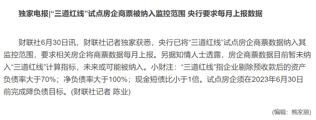所以說,“三道紅線”試點房企商票納入監管相當于打了一個政策補丁