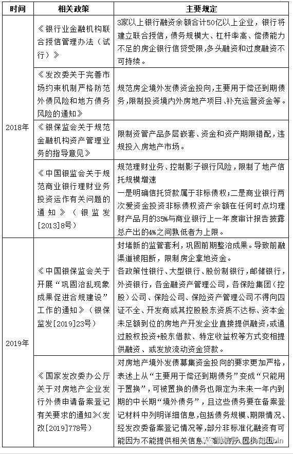 2019年6月份開始,地產行業再融資業務幾乎全面收緊,無論是信貸、境外債還是非標融資等。2019年7月6日,中國銀保監會針對部分房地產信托業務增速過快、增量過大的信托公司進行約談警示;2019年7月10日,中國銀保監會針對部分房地產貸款較多,增速較快的銀行進行窗口指導,要求控制房地產貸款額度;2020年2月21日,央行召開2020年金融市場工作會議,要求保持房地產金融政策的連續性、一致性和穩定性,繼續“因城施策”落實好房地產長效管理機制,促進市場平穩運行。2020年11月25日,多家信托公司收到來自監管部門的窗口指導,要求嚴格壓降融資類信托業務規模,按照年初規劃,2020年全行業壓降1萬億具有影子銀行特征的融資類信托業務,意味著房企融資將會進一步收緊。