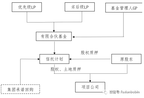 如果需要進入較為穩健的大量資金,還需要集團予以承諾回購,并提供股權、土地的質押,其交易結構基本如下: