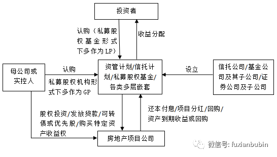 私募股權基金投資模式下,一般由項目公司母公司或實際控制人作為GP,享受基金劣后收益,投資方作為LP,享受基金優先級收益,私募股權投資基金以權益投資方式投資房地產項目公司,仍以特殊分紅條款或回購等方式來進行退出。