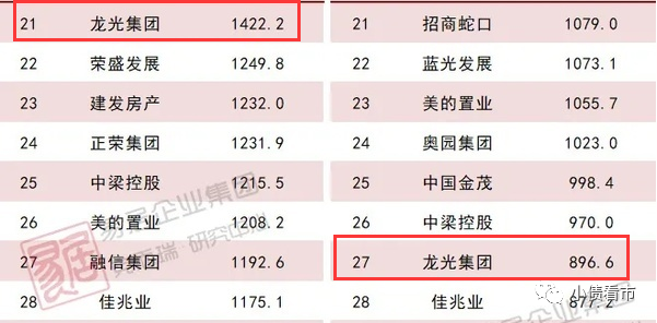 據克而瑞數據,2020年龍光集團以1422.2億操盤金額在房企中排第21位;以896.6萬平方米操盤面積位居第27名,屬于中型房企。