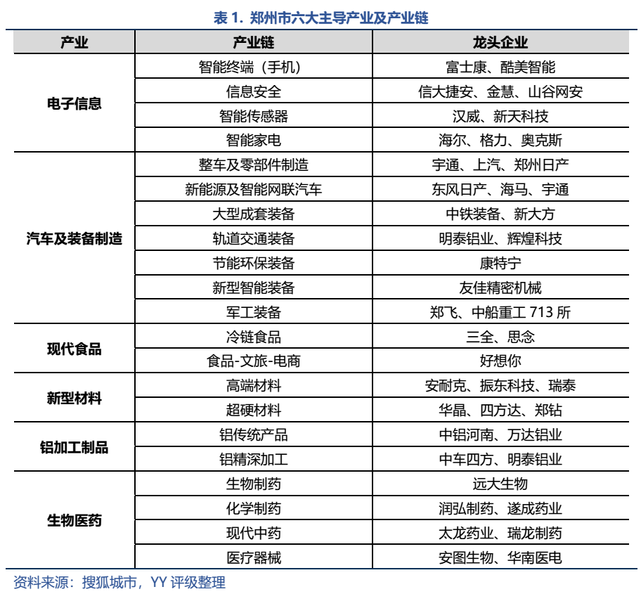 分產業來看,鄭州目前形成了六大主導產業,分別是電子信息、汽車及裝備制造、現代食品、新型材料、鋁加工制品和生物醫藥產業。2020年全市六大主導產業增加值增長6.3%,成為拉動全市工業增長的中流砥柱;2021年六大主導產業同比增速更是高達33.3%,增長強勁。