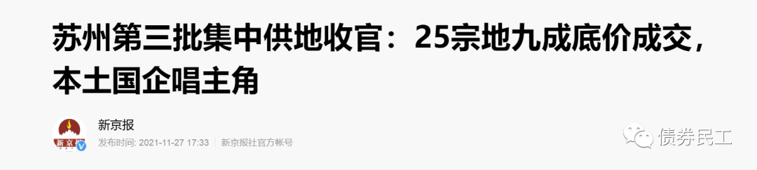 2021年11月24日至26日的蘇州市第三批集中供地中,蘇州市相城城市建設(shè)投資(集團(tuán))有限公司、蘇州蘇高新集團(tuán)有限公司、蘇州市吳江濱湖投資集團(tuán)有限公司等城投公司的均摘得一定的土地使用權(quán)。