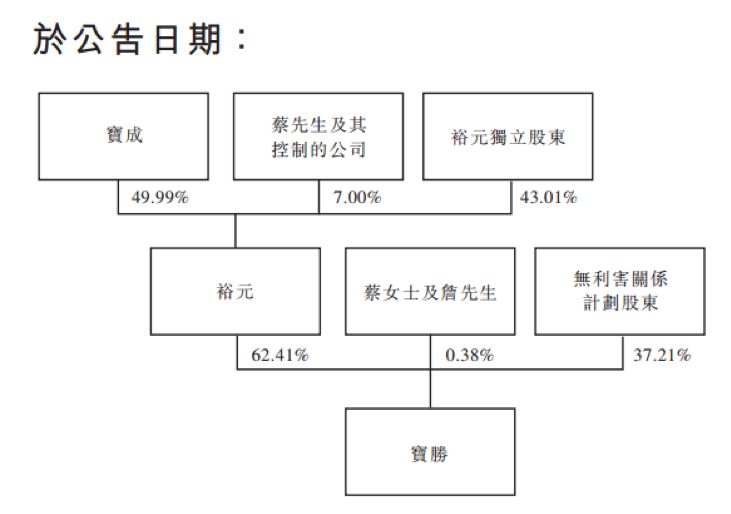 2008年,裕元集團(tuán)將寶勝國(guó)際在港股分拆上市。十年后的2018年1月21日,寶勝國(guó)際公告稱,寶成工業(yè)提出每股2.03港元私有化上市公司,即將大股東裕元集團(tuán)和其余股東手中全部股份收購(gòu)注銷,將耗資109億港元。前一交易日收盤價(jià)為1.54港元,溢價(jià)31.82%。下圖為假設(shè)私有化完成后的持股情況: