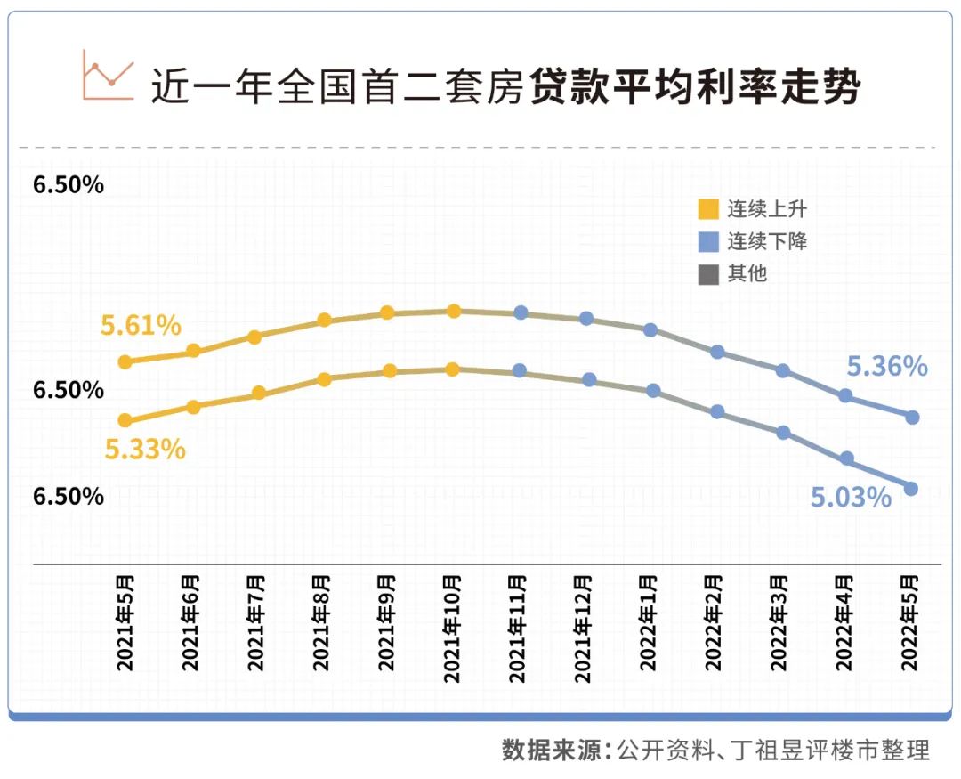 彼時(shí),全國首套房平均房貸利率為4.45%,二套為5.4%。