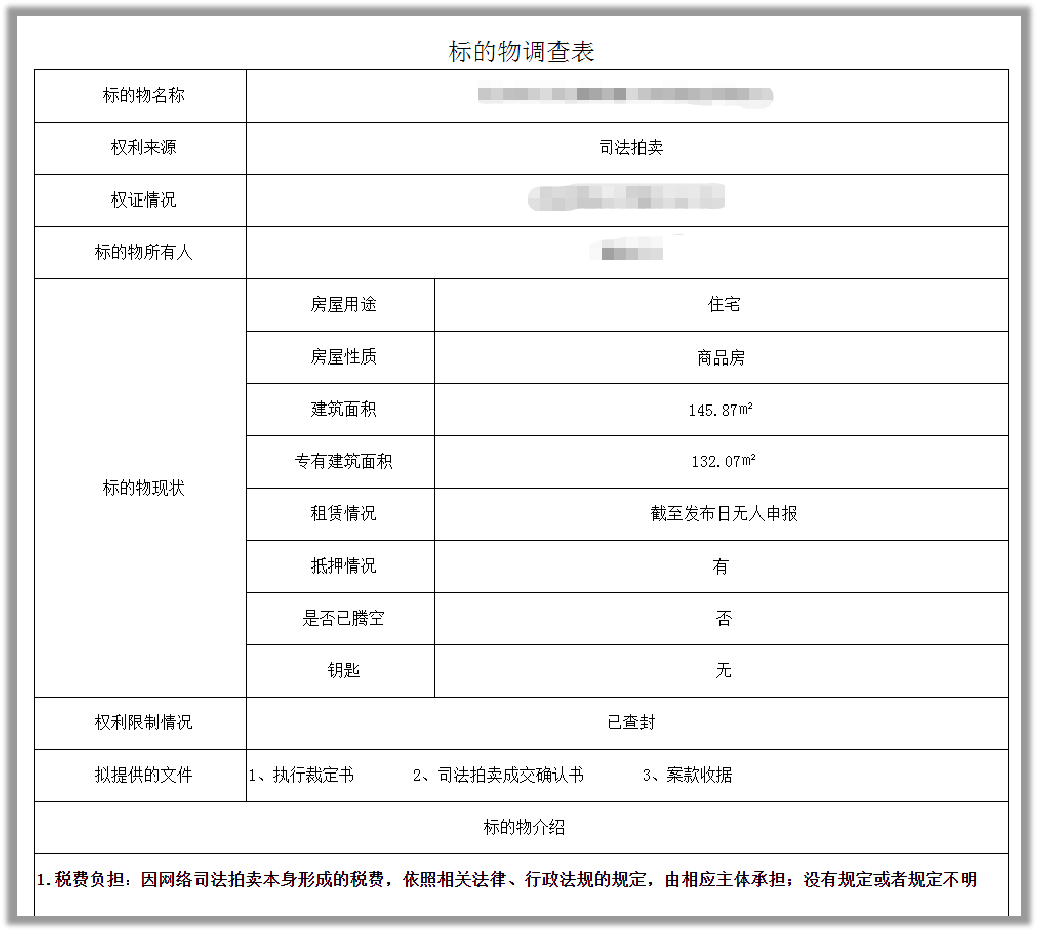 一般公告中常見的標(biāo)的物調(diào)查表,不翼而飛,而標(biāo)的物調(diào)查表是非常重要的記載房源信息載體,通常會公示房屋性質(zhì)、租賃情況、產(chǎn)權(quán)證號、被執(zhí)行人相關(guān)信息等內(nèi)容,這些是輔助競買人作出競買決策的重要信息,等不要提房子沒有評估報告了。
