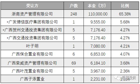 轉(zhuǎn)讓方 | 戶數(shù) | 本金(萬) | 比例 |