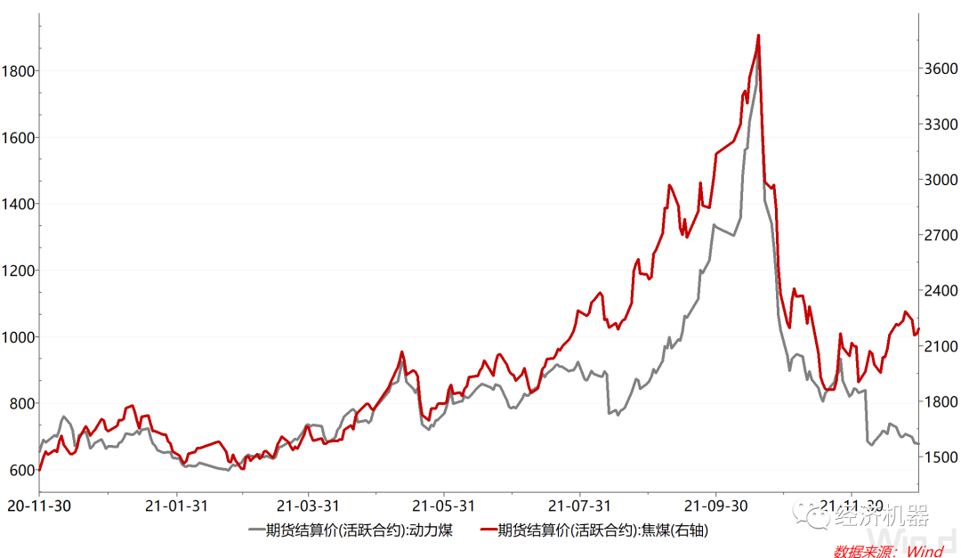 隨著能源保供政策效果的顯現,主要原材料價格已出現明顯回落。不過近來,不同品種走勢也開始出現分化,比如12月動力煤的期貨價格仍在低位震蕩,而焦煤價格則受房地產、基建預期好轉等因素的影響,與螺紋鋼價格類似,近來出現持續上漲(圖4)。布倫特原油價格則因對奧密克戎疫情的擔憂得到緩解而開始回升,12月也累計了15%的漲幅。預計企業經營成本未來將不會再有大幅的下降。