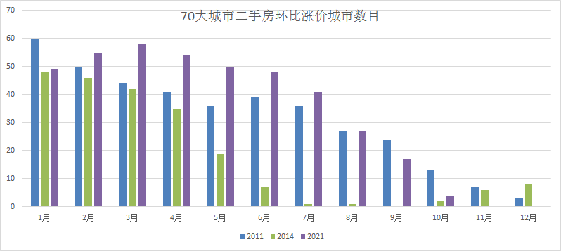 圖:三輪房產降溫前房價上漲城市數目對比