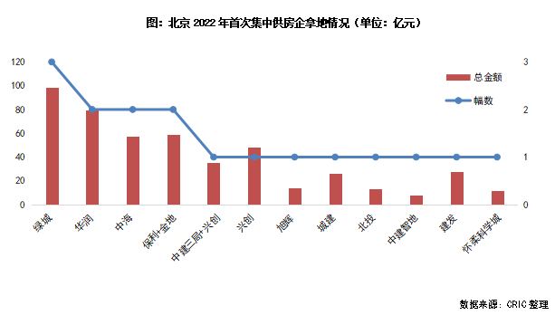 整體來看,北京首輪集中土拍表現(xiàn)有所回溫,雖然仍有半數(shù)地塊底價成交,但是也出現(xiàn)了崔各莊、中關(guān)村生命科學(xué)園地塊這樣觸及限價的地塊,且品牌房企的回歸、積極參拍也說明企業(yè)的投資積極性正在修復(fù)。北京本輪土拍的表現(xiàn)對于今年土地市場的信心的提振有一定作用。