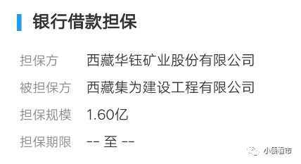 截至2020年末,華鈺礦業為西藏集為建設工程有限公司貸款事項向擔保公司拉薩市信用融資擔保有限責任公司提供反擔保,擔保余額1.6億元,占期末凈資產的6.36%。