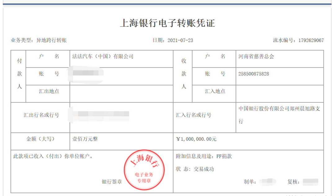 值得一提的是,此次河南災情,法法汽車(中國)汽車有限公司也向河南省慈善總會捐款100萬元。賈躍亭還@河南省慈善總會表示,“我們剛起步,盡一點綿薄之力。成為一家上市公司只是FF的開始,構(gòu)建共享共創(chuàng)的出行未來才是我們的使命。”