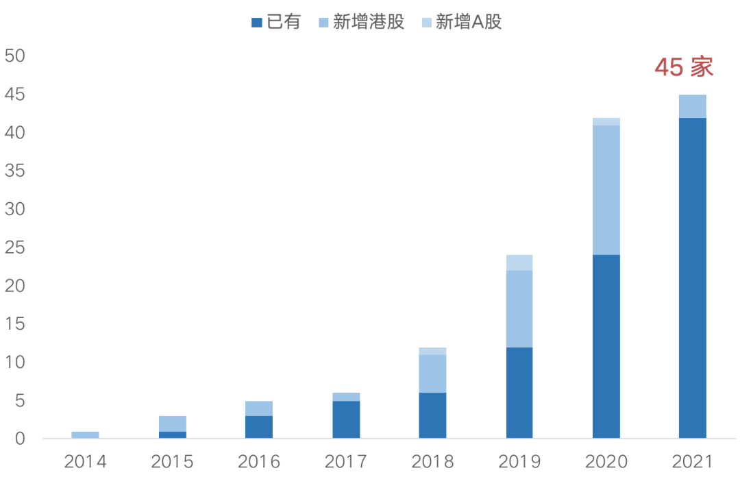 圖:2014-2021年2月物業(yè)服務(wù)企業(yè)上市數(shù)量分布