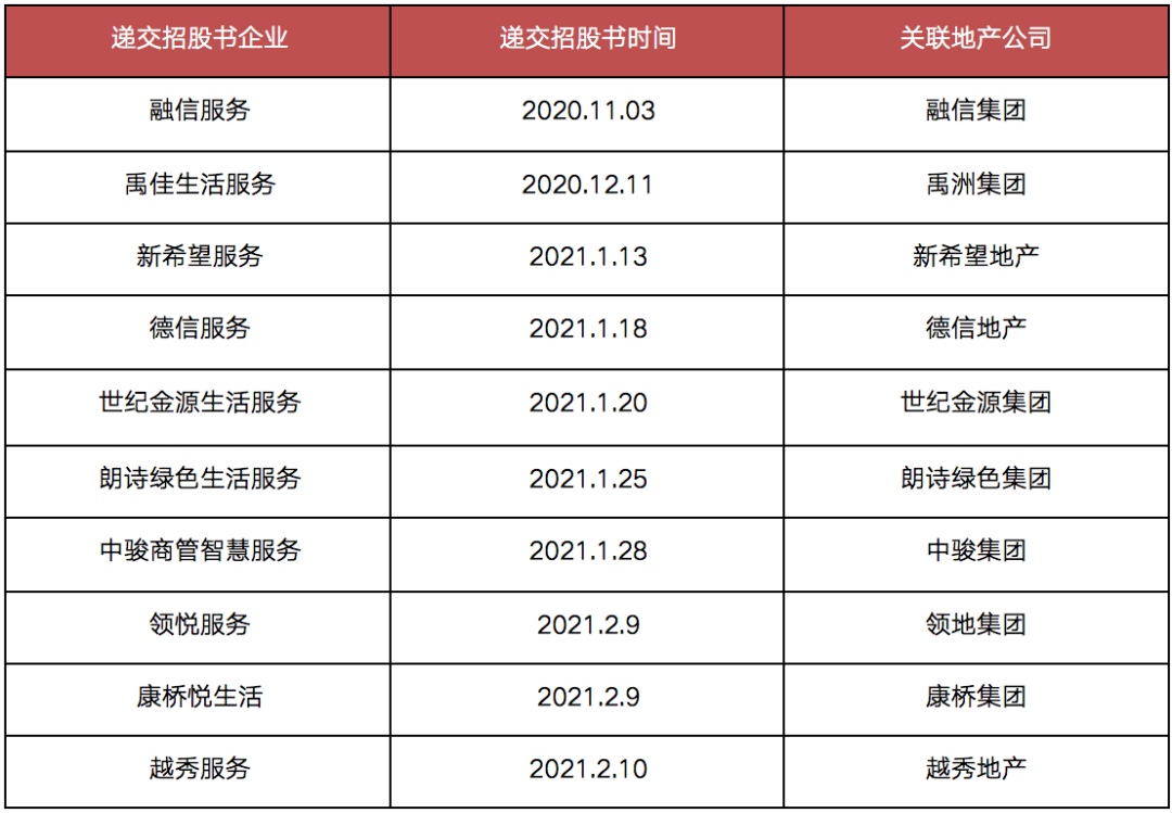 據(jù)克而瑞物管統(tǒng)計,目前已遞交招股書的物企有10家,均具備地產(chǎn)背景。