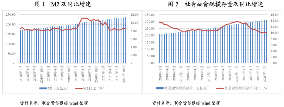 2021年以來,隨著疫情逐步得到控制以及經濟逐漸恢復,央行的貨幣政策由“穩增長”向“防風險和調結構并重”轉變,M2和社會融資規模增速在經歷了一季度的高點后逐步回落至疫情前水平。