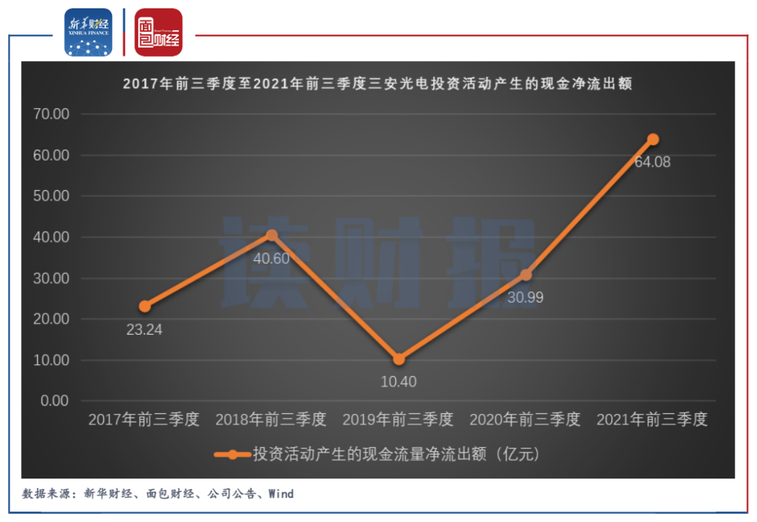 圖2:2017年前三季度至2021年前三季度三安光電投資活動產(chǎn)生的現(xiàn)金凈流出額
