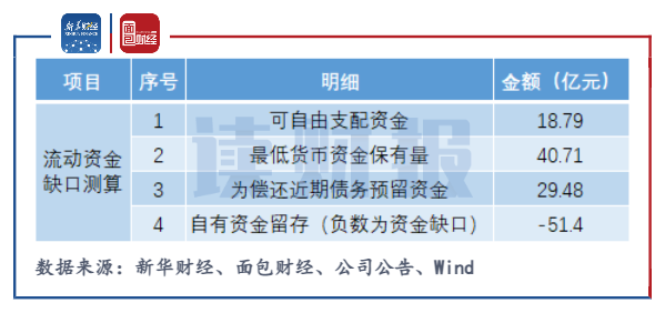 公司48.33億元貨幣資金余額中,僅18.79億元為可自由支配資金。經(jīng)公司對最低貨幣保有量以及為償還近期債務(wù)預(yù)留資金的相關(guān)測算,截至2021年9月30日,公司流動資金缺口高達(dá)51.4億元。
