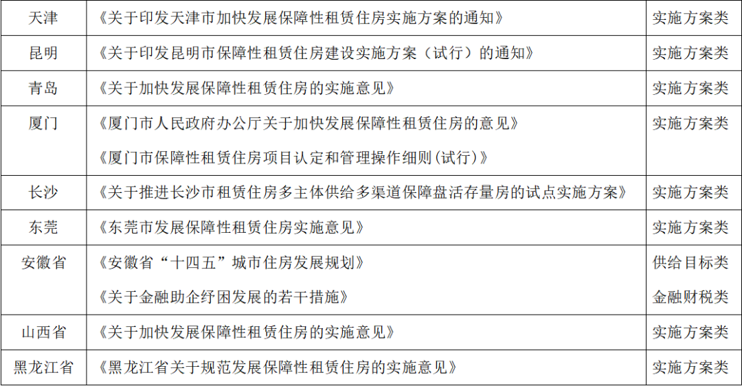 表2:2022年5月各地租賃住房相關重點政策匯總