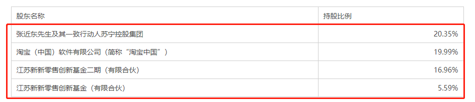 此前,江蘇國資聯(lián)手阿里、小米、海爾、美的、TCL等組成的新新零售創(chuàng)新基金二期,受讓蘇寧易購16.96%股權(quán)。這導致蘇寧易購進入無控股股東、無實控人狀態(tài)。具體來說,張近東及蘇寧控股集團占股20.35%;江蘇國資牽頭的兩期基金通過兩次“戰(zhàn)投”,分別占股5.59%、16.96%;淘寶(中國)軟件有限公司占股19.99%。