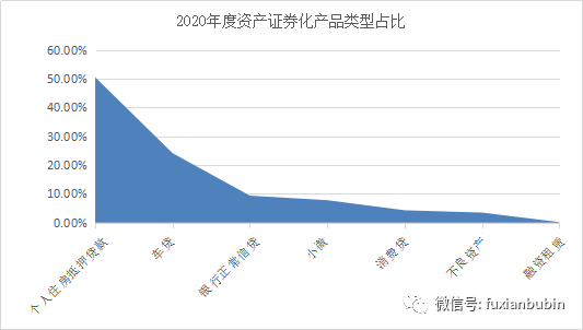 2020年度,信貸資產證券化產品一共發行184單,規模共計8041.90億元,其中,以個人住房抵押貸款、車貸、銀行正常信貸、小微、消費貸、融資租賃為底層資產的資產證券化產品占比分別為50.49%、24.13%、9.38%、7.80%、4.31%、0.19%,同比都有不同幅度的縮減,但不良資產證券化產品的市場份額則從1.49%提升至3.50%,在疫情影響下呈現大幅逆勢增長。