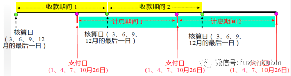 支付日一般有明確的日期(如1/4/7/10月的26日),如果該日不是工作日,則順延到下一個工作日;計息期間為固定期限,計息期間不因支付日的變動而變動。進一步細化期間及各個日期情況如下: