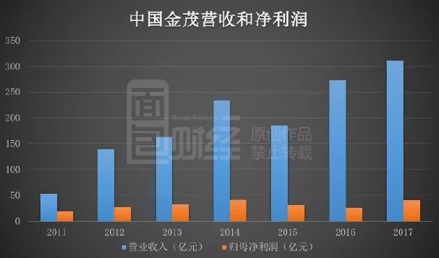 金茂的利潤在經歷前幾年的下滑后,在2017年開始恢復增長。