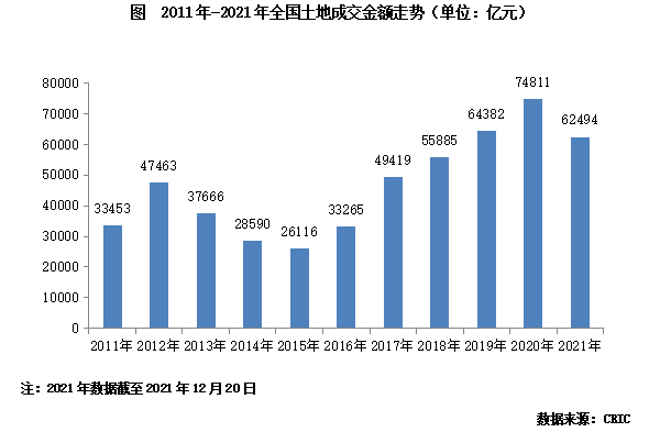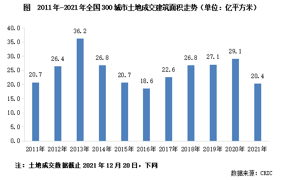 截止2021年12月20日,全國300城土地市場成交建筑面積20.4億平方米,較2020年同期下降了24%。考慮到集中供地政策之下土地市場成交規(guī)模明顯收縮,12月下旬成交量將遠不及去年同期,預計2021年土地市場總量將難以超越2020年的水平,并且全年成交規(guī)模同比降幅較目前將繼續(xù)擴大,全年降幅大概率將超過25%。