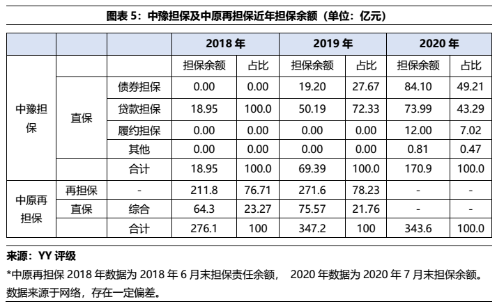 放眼河南省整體債券擔保情況,中豫擔保始終是近年擔保規模最大的機構。省內中字系擔保機構中證信用(包括中證融資擔保)和中債增擔保規模逐漸擴大,擔保主體資質略高于其他機構,以YY評級5檔和6檔為主,其他多以7檔、8檔和9檔為主。總體而言中豫擔保憑借較強的地域優勢,近兩年市場占比較為穩定,擔保業務穩健擴張。