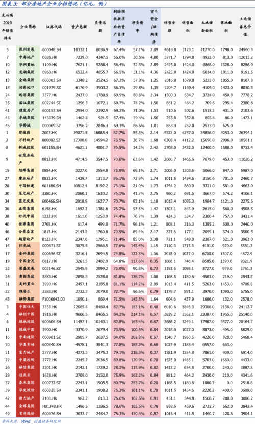 根據國盛證券按“三道紅線”標準測算,以2019年末數據為基準,銷售排名前50位的房地產企業中,均未超過警戒線的有11家,超過1條警戒線的有15家,超過2條警戒線的有8家,超過3條警戒線的有15家。