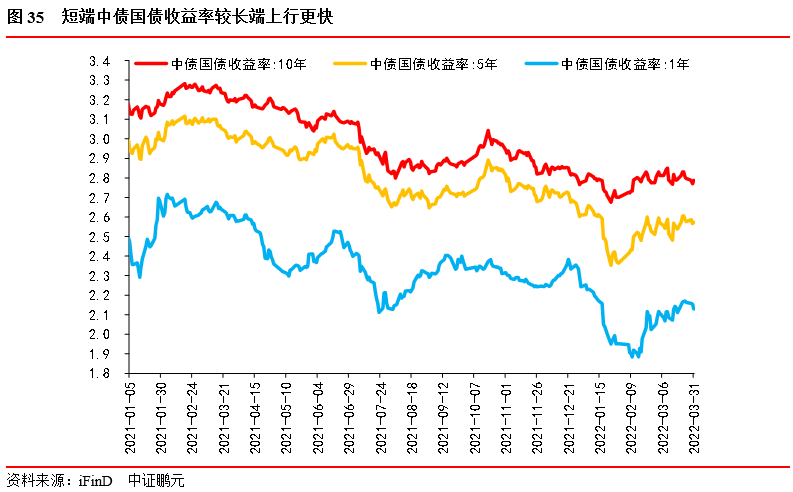 2月的經(jīng)濟(jì)數(shù)據(jù)雖有向好,但難掩與微觀主體較弱現(xiàn)實(shí)的背離,經(jīng)濟(jì)下行壓力仍大,債券市場(chǎng)較情緒化。受貨幣寬松預(yù)期,美聯(lián)儲(chǔ)加息,地緣政治沖突、疫情多重因素影響,債市在多空交織下,維持震蕩,整體還是走熊。其中,1年期中債國(guó)債到期收益率上行幅度明顯大幅5年期和10年期中債國(guó)債到期收益率。