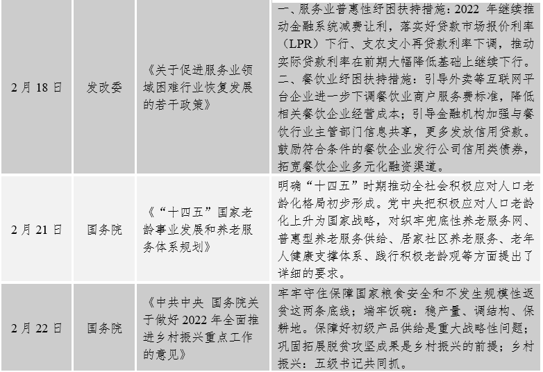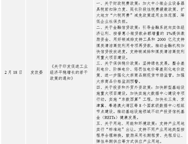 宏觀經(jīng)濟(jì)設(shè)計(jì)方面:主要圍繞穩(wěn)增長(zhǎng)出臺(tái)一系列政策和措施。中共中央政治局召開(kāi)會(huì)議,討論國(guó)務(wù)院擬提請(qǐng)第十三屆全國(guó)人民代表大會(huì)第五次會(huì)議審議的《政府工作報(bào)告》稿。會(huì)議強(qiáng)調(diào),堅(jiān)持穩(wěn)中求進(jìn)工作總基調(diào),著力穩(wěn)定宏觀經(jīng)濟(jì)大盤(pán),保持經(jīng)濟(jì)運(yùn)行在合理區(qū)間,保持社會(huì)大局穩(wěn)定,迎接黨的二十大勝利召開(kāi)。今年工作要堅(jiān)持穩(wěn)字當(dāng)頭、穩(wěn)中求進(jìn)。要加大宏觀政策實(shí)施力度,堅(jiān)定實(shí)施擴(kuò)大內(nèi)需戰(zhàn)略,推動(dòng)外貿(mào)外資平穩(wěn)發(fā)展,防范化解金融風(fēng)險(xiǎn),守住不發(fā)生系統(tǒng)性風(fēng)險(xiǎn)的底線,努力完成全年經(jīng)濟(jì)社會(huì)發(fā)展目標(biāo)任務(wù)。國(guó)務(wù)院常務(wù)會(huì)議要求加大工業(yè)、服務(wù)業(yè)、消費(fèi)業(yè)所得稅減免力度,支持增加普惠小微貸款等,推動(dòng)制造業(yè)中長(zhǎng)期貸款較快增長(zhǎng),促進(jìn)企業(yè)綜合融資成本穩(wěn)中有降,加快新型基礎(chǔ)設(shè)施建設(shè)、重點(diǎn)領(lǐng)域節(jié)能降碳技術(shù)改造等,擴(kuò)大有效投資。發(fā)改委相繼印發(fā)了《關(guān)于印發(fā)促進(jìn)工業(yè)經(jīng)濟(jì)平穩(wěn)增長(zhǎng)的若干政策的通知》、《關(guān)于促進(jìn)服務(wù)業(yè)領(lǐng)域困難行業(yè)恢復(fù)發(fā)展的若干政策》、《關(guān)于進(jìn)一步完善煤炭市場(chǎng)價(jià)格形成機(jī)制的通知》,加大工業(yè)、服務(wù)業(yè)、煤炭業(yè)的支持措施。