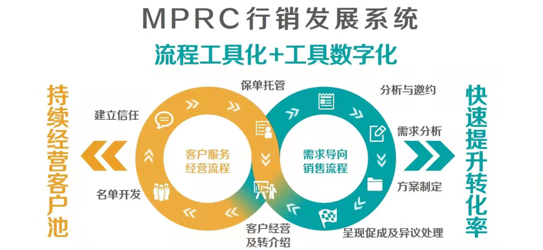 i云保業務培訓發展部負責人胡艷波表示,MPRC行銷發展系統強調以服務貫穿整個客戶開發和經營,課程創造性的提出了雙循環的理念,以客戶保單托管為核心,鏈接客戶經營和客戶轉化兩大循環,同時通過各銷售環節的工具化、流程化,讓代理人能更快適應和掌握這套行銷發展理念和技能。