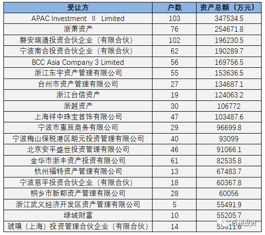 1、三級市場投資機構收包出包排行榜