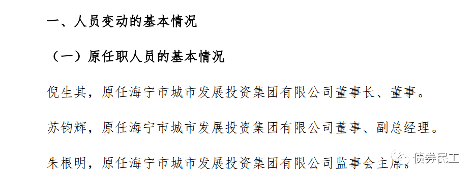 2、2022年1月14日,海寧市城市發(fā)展投資集團(tuán)有限公司公告,公司的董事長(zhǎng)、副總經(jīng)理、監(jiān)事會(huì)主席發(fā)生變動(dòng),并新增了部分董事。