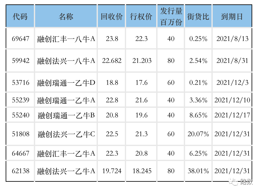 其他牛證或多或少還有點剩余價值。融創(chuàng)海通一牛八A(61766.HK)是最慘的,每股剩余價值為0。