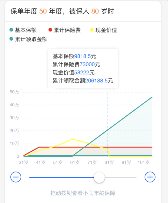 等到小王80歲的時候,已經(jīng)領(lǐng)取了20.6萬,本金也已經(jīng)翻了近3倍。