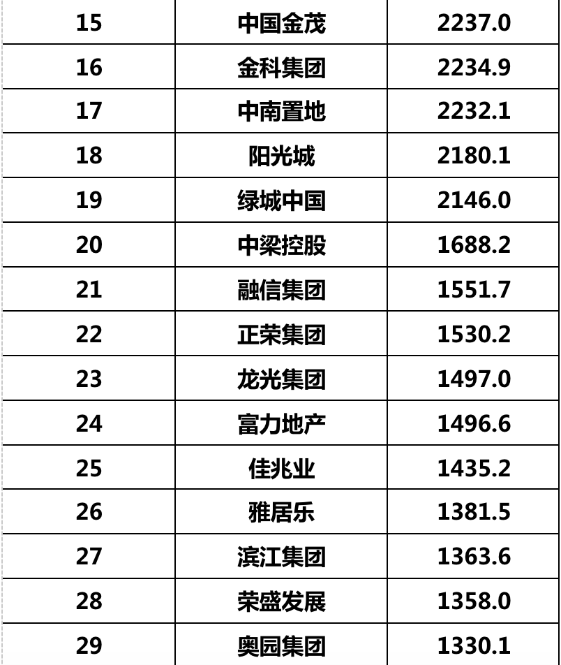 2020年度中國房地產企業銷售全口徑榜