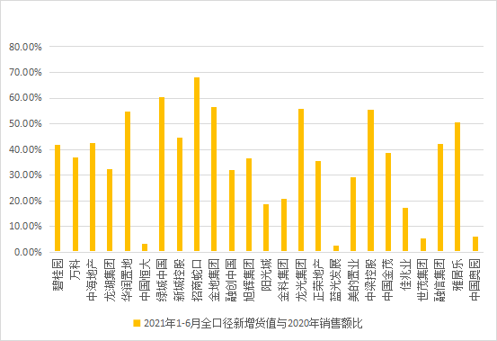 同時,“兩集中”政策帶來了土地溢價率的提升對于對利潤率要求嚴格的開發商來說,擴充土儲面臨新的障礙。如,世茂集團盡管在年初提出“在后續集中供地上世茂還是有拿地的優勢,集團也預留了一些資金積極參與”,但前六個月其拿地金額僅為158.3億元,僅占2020年銷售額的5.27%。