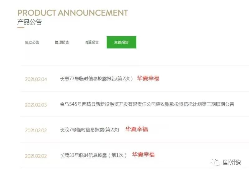 據(jù)悉,雪松信托于春節(jié)前在其官網(wǎng)上陸續(xù)發(fā)布了長(zhǎng)惠77號(hào)、長(zhǎng)茂7號(hào)、長(zhǎng)茂33號(hào)信托計(jì)劃臨時(shí)信息披露報(bào)告。相比平時(shí)頻繁發(fā)布臨時(shí)信息披露的金鶴、金馬、金兔、金虎等歷史遺留項(xiàng)目,雪松信托對(duì)其自主發(fā)行的長(zhǎng)X系列產(chǎn)品發(fā)布臨時(shí)信息披露極為少見。